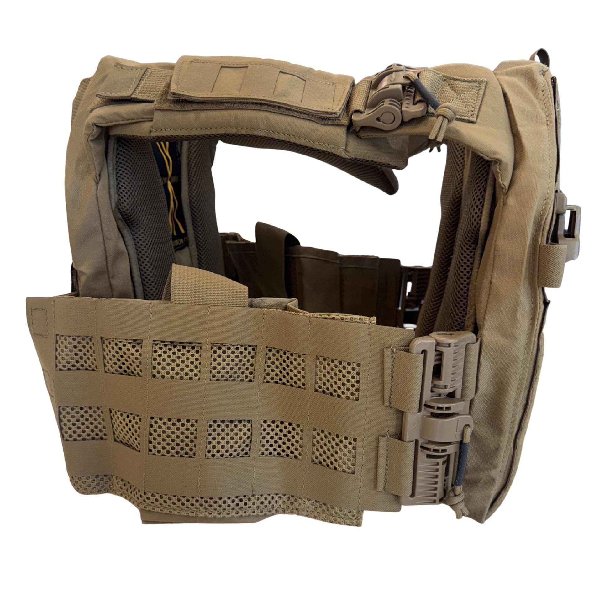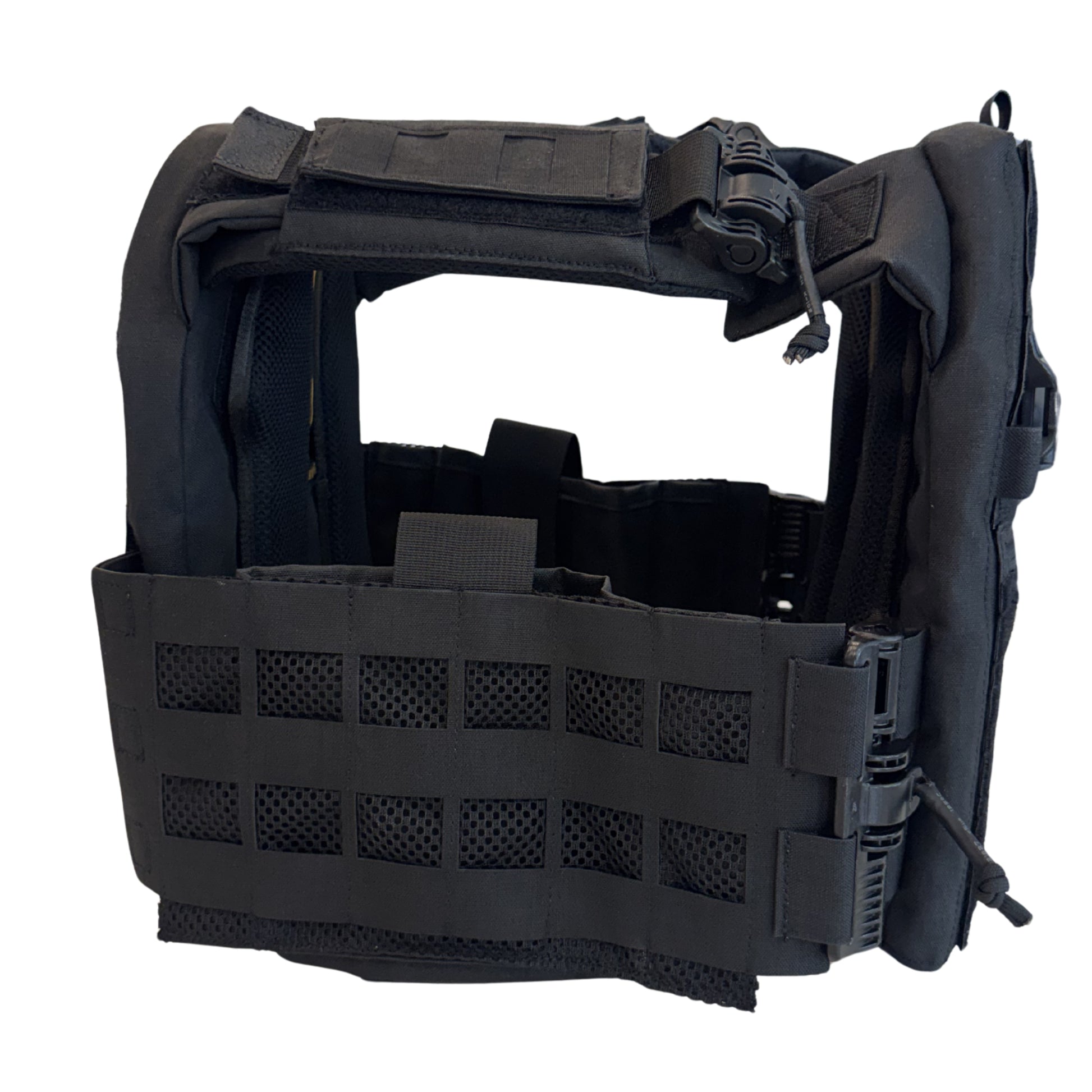 Capability and comfort keep you in the fight longer. The Laser Cut Plate Carrier Pro will accept 10"x12" body armor. For example, to increase comfort and protection it is possible to run soft armor behind hard plates utilizing the dual-chamber system! The cummerbund accepts side plates (6”x6” or 6"x8") and is modular/removable, with the inclusion of the built-in 2-inch quick-release buckles. The configuration and customization options with the our Laser Cut Plate Carrier Pro is endless.